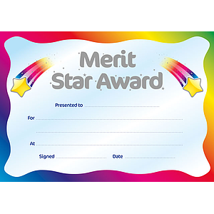 Metallic 'Merit Star Award' Certificate
