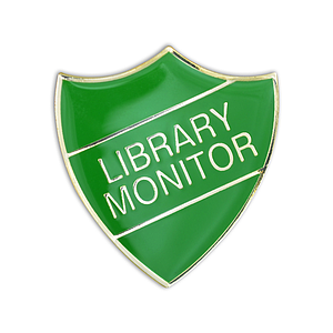LIBRARY MONITOR badge green and gold (pack of 5)