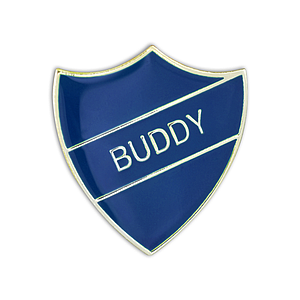 BUDDY blue and gold badge (pack of 5)