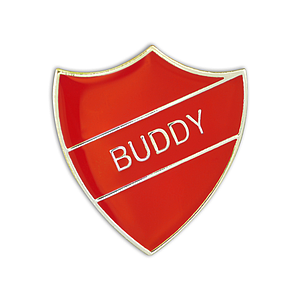 BUDDY Red and gold badge (pack of 5)
