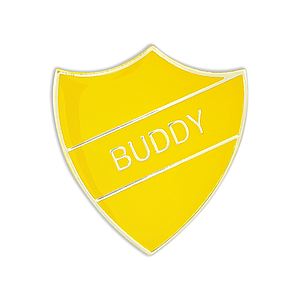 BUDDY Yellow and gold badge (pack of 5)
